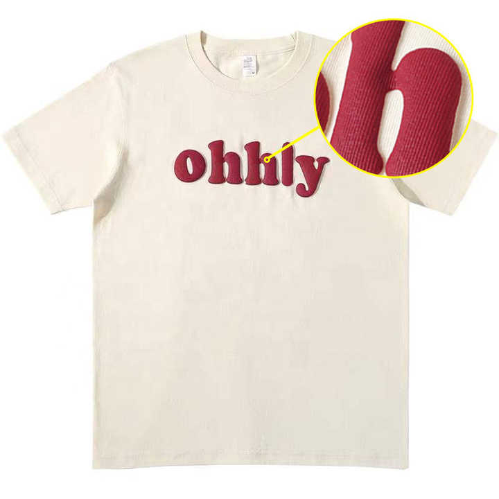 เสื้อยืดพิมพ์ลายพัฟ3D ผ้าฝ้าย100% สำหรับผู้ชายทรงหลวมพิมพ์โลโก้ด้วยโฟมออกแบบได้ตามต้องการ
