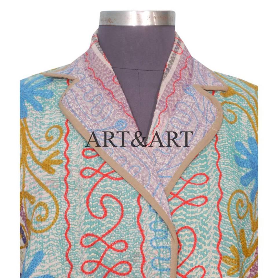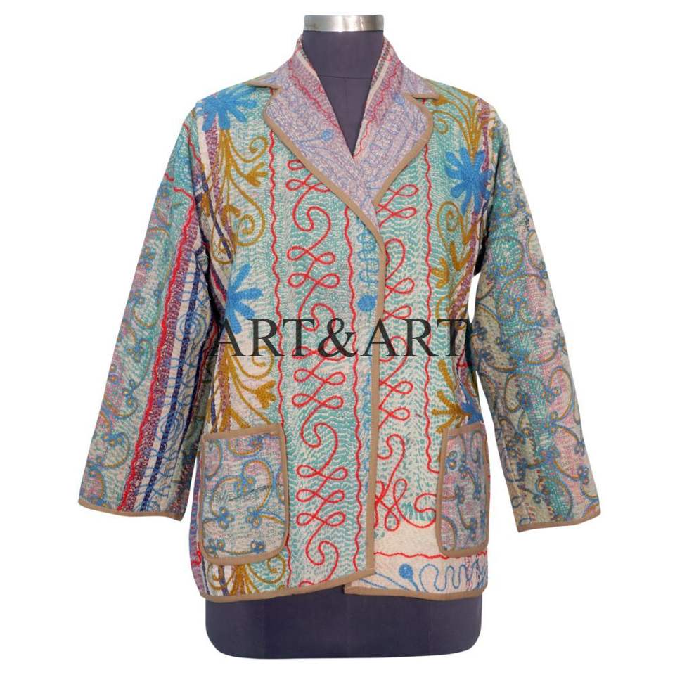 เสื้อแจ็คเก็ตผ้าฝ้าย 100% งานออกแบบคันธา ถักหลากสี สไตล์ชาติพันธุ์ ปักลาย ติดกระดุม ทำมือ วินเทจ เป็นมิตรกับสิ่งแวดล้อม ขายส่ง