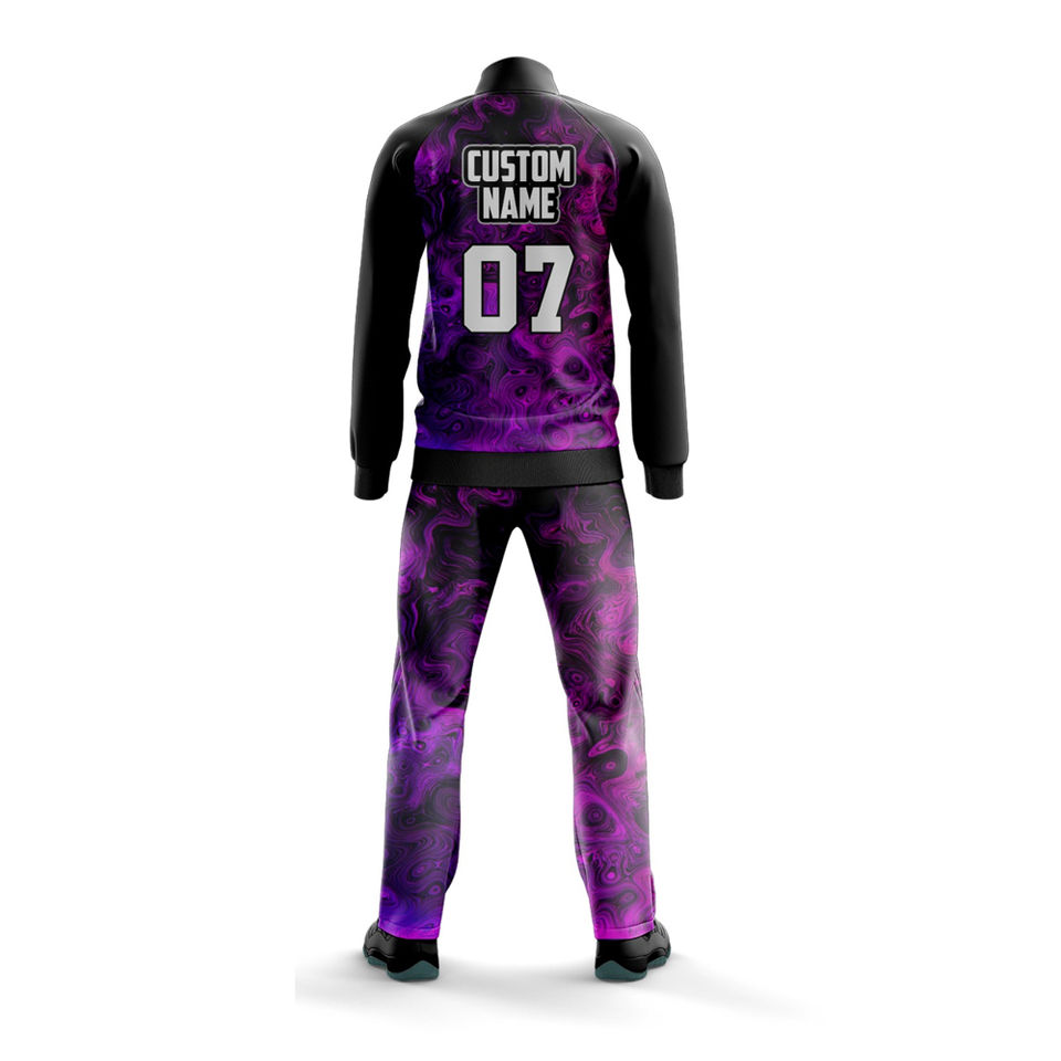 ชุดวอร์มคอตั้งพิมพ์ลายแบบซับลิเมชั่นทั้งตัว ผ้าฝ้าย 100% เป็นมิตรกับสิ่งแวดล้อม แห้งเร็ว มีซิปที่กางเกง ขายส่ง ปรับแต่งได้