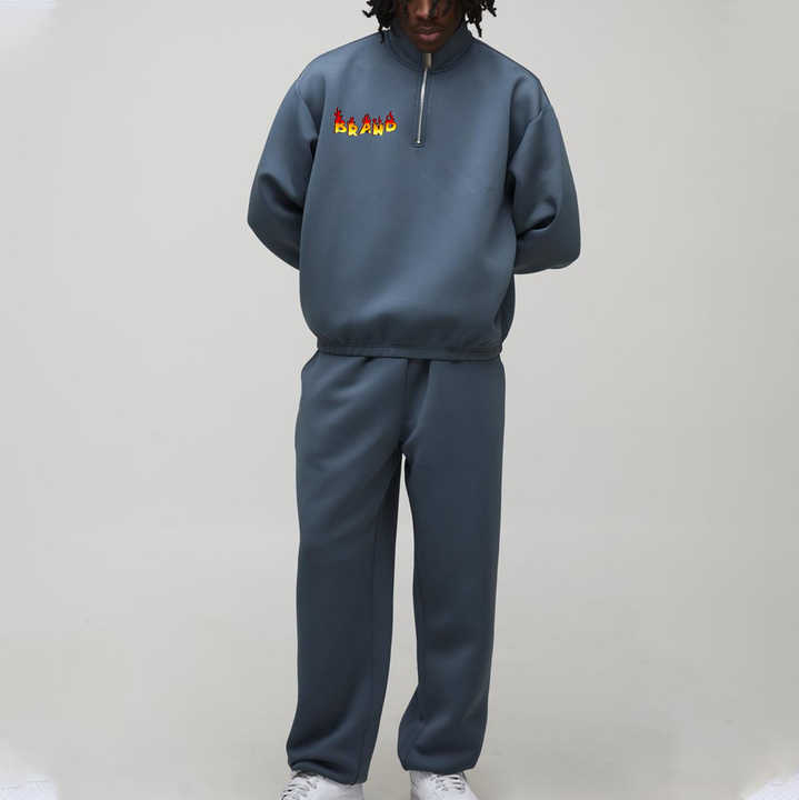 ชุดวอร์มผู้ชายผ้าฟลีซคอตตอน 100% แบบโอเวอร์ไซส์ ซิป ¼ ตัว ชุดเซ็ต 2 ชิ้น สไตล์ฮิปฮอป หนานุ่ม ขายส่ง