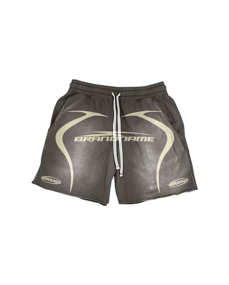 กางเกงขาสั้นผ้าฝ้าย100% สีทึบลายพระอาทิตย์ซีดจางสไตล์ลำลองสตรีทแวร์สกรีนลายโลโก้แบบวินเทจ