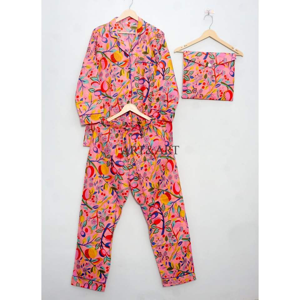 ชุดนอนผ้าฝ้ายอินเดียแท้ 100% ลายดอกไม้ ชุดนอนฤดูร้อน แฟชั่นไซส์ใหญ่ ของขวัญสำหรับผู้หญิง ขายส่ง