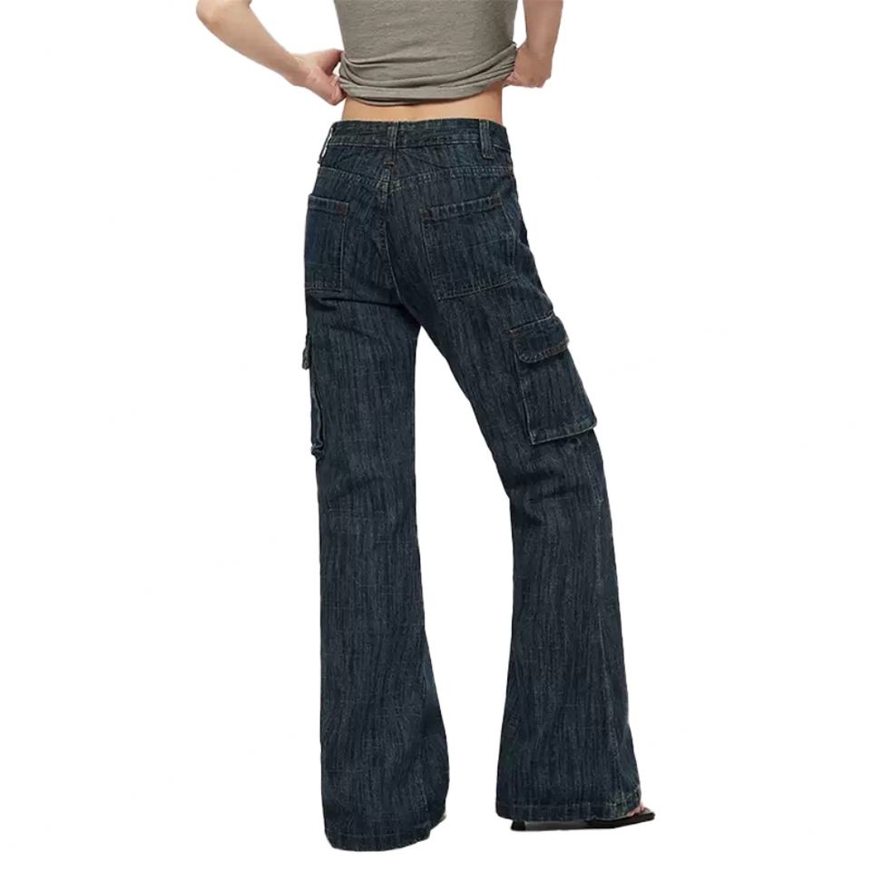 Wholesale 100% Cotton Jeans Flared Fit Baggy Pants Trousers for Ladies Multi Pockets Cargo Pants Women's Denim