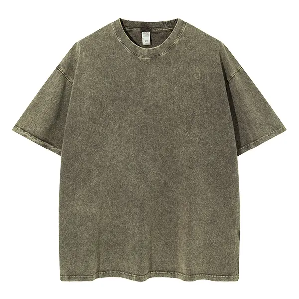 เสื้อยืดเจอร์ซีย์ถักนิตติ้งผ้าฝ้าย 100% คุณภาพสูง ล้างสีแบบ Acid Wash ทรงโอเวอร์ไซส์ สไตล์เรียบง่าย รับผลิตตามแบบ OEM แบรนด์เสื้อยืดเปล่าลำลอง
