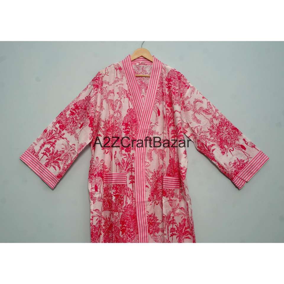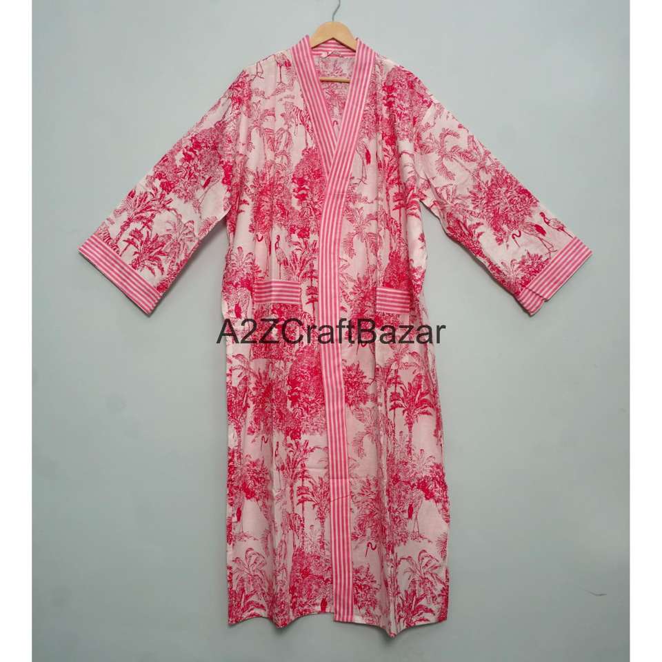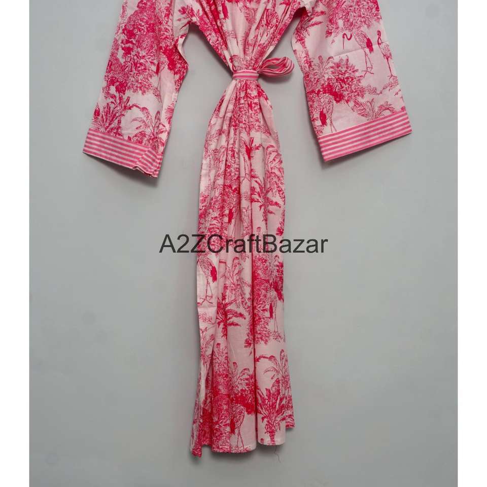 Wholesale 100% Cotton Kimono Hand Block Cotton Kimono Manufacturer of Women's Wear Designer Long Kimono Robe With Belt