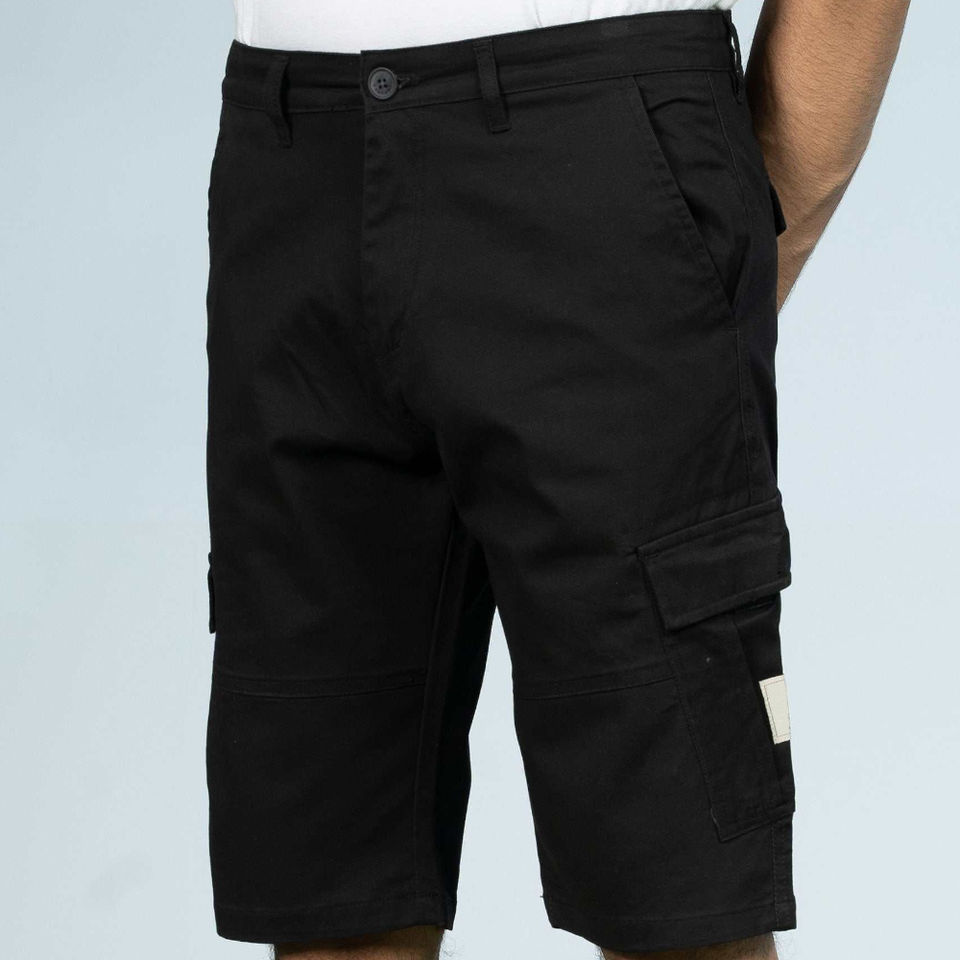 กางเกงคาร์โก้ขาสั้นแบบลำลองของผู้ชายผ้าฝ้าย100% สีดำทรงปกติปักลายและปิดด้วยเชือก3D