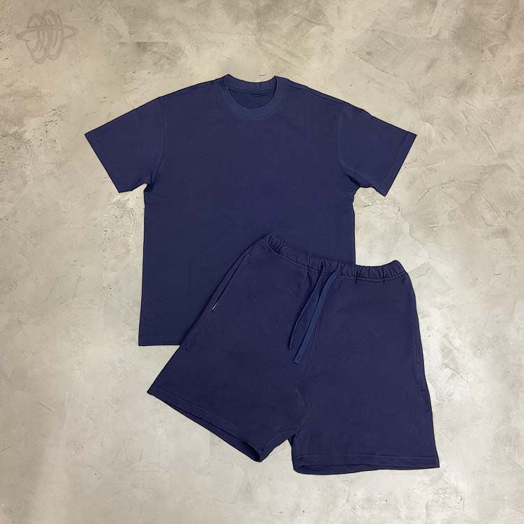 ชุดออกกำลังกายกางเกงขาสั้นผ้าฝ้าย100% สำหรับผู้ชายชุดออกกำลังกายแบบลำลองสีพื้นเป็นมิตรต่อสิ่งแวดล้อมระบายอากาศ