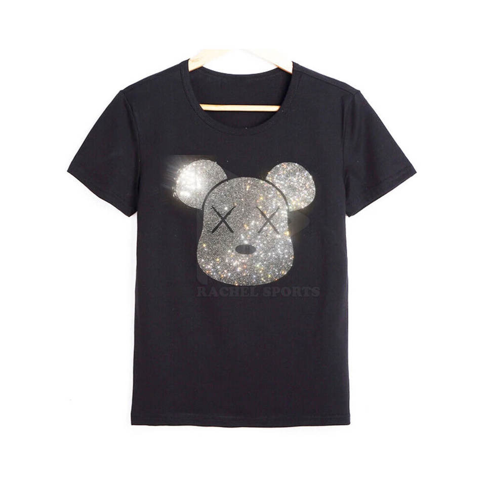 เสื้อยืดผู้ชายไซส์ใหญ่ลำลอง แขนสั้น ตกแต่งด้วยคริสตัล รับผลิตตามสั่ง พร้อมบริการ OEM ปรับแต่งสีและป้ายกำกับได้