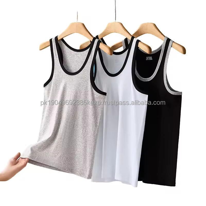เสื้อกล้ามผู้ชายผ้าฝ้าย 100% ขายส่ง แบบสองสีและแบบสีเดียว สำหรับออกกำลังกายและวิ่ง