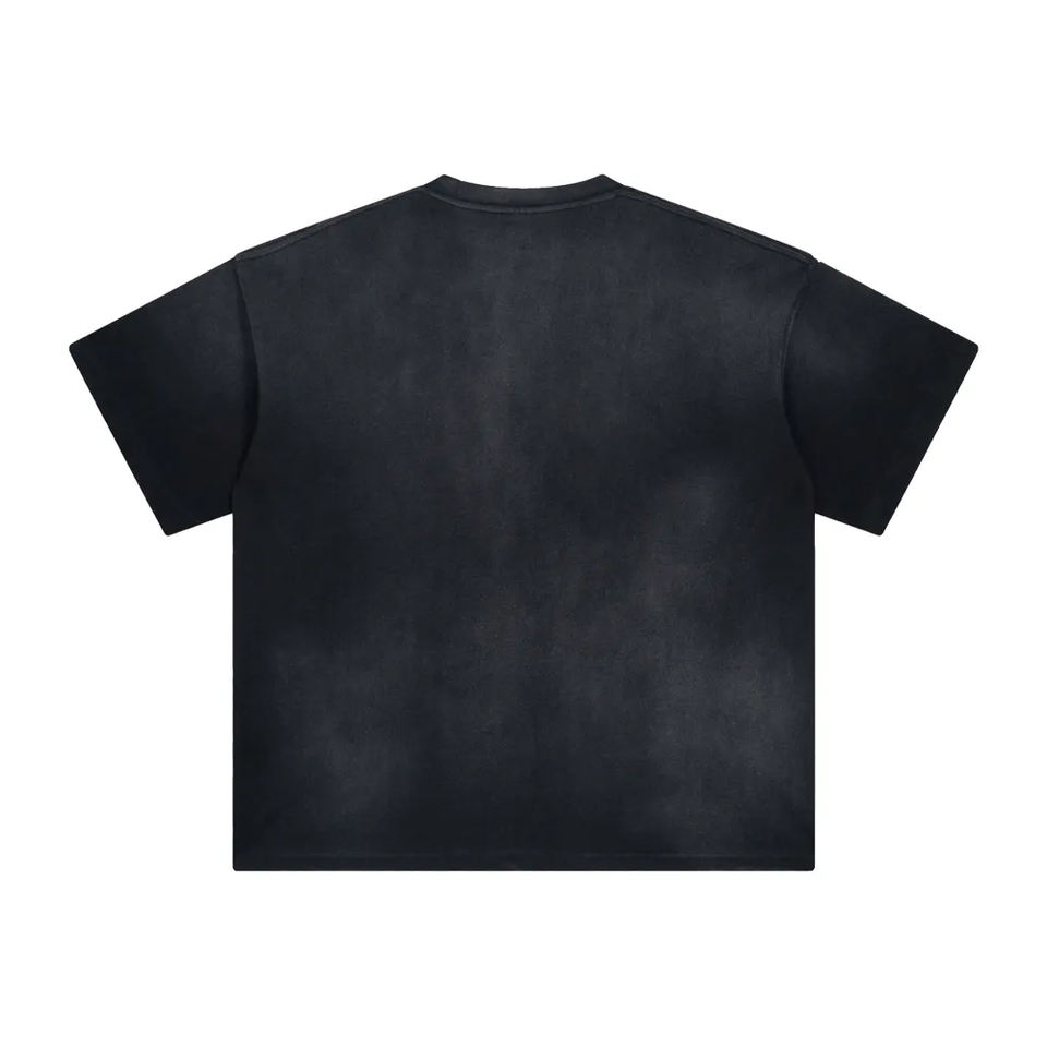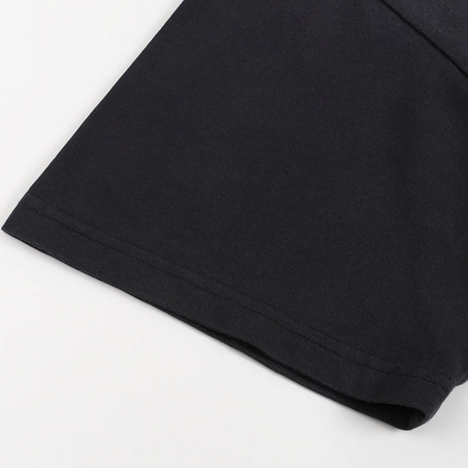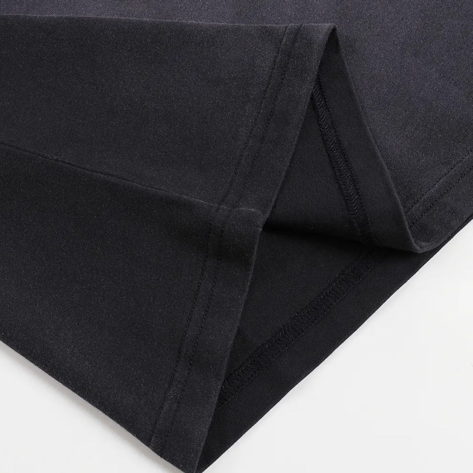เสื้อยืดคอตตอน 100% ทรงโอเวอร์ไซส์ สีดำ พิมพ์ลาย สกรีนโลโก้ได้ ผลิตแบบถัก สำหรับผู้ชาย ล้างแบบ Snow Wash ขายส่ง