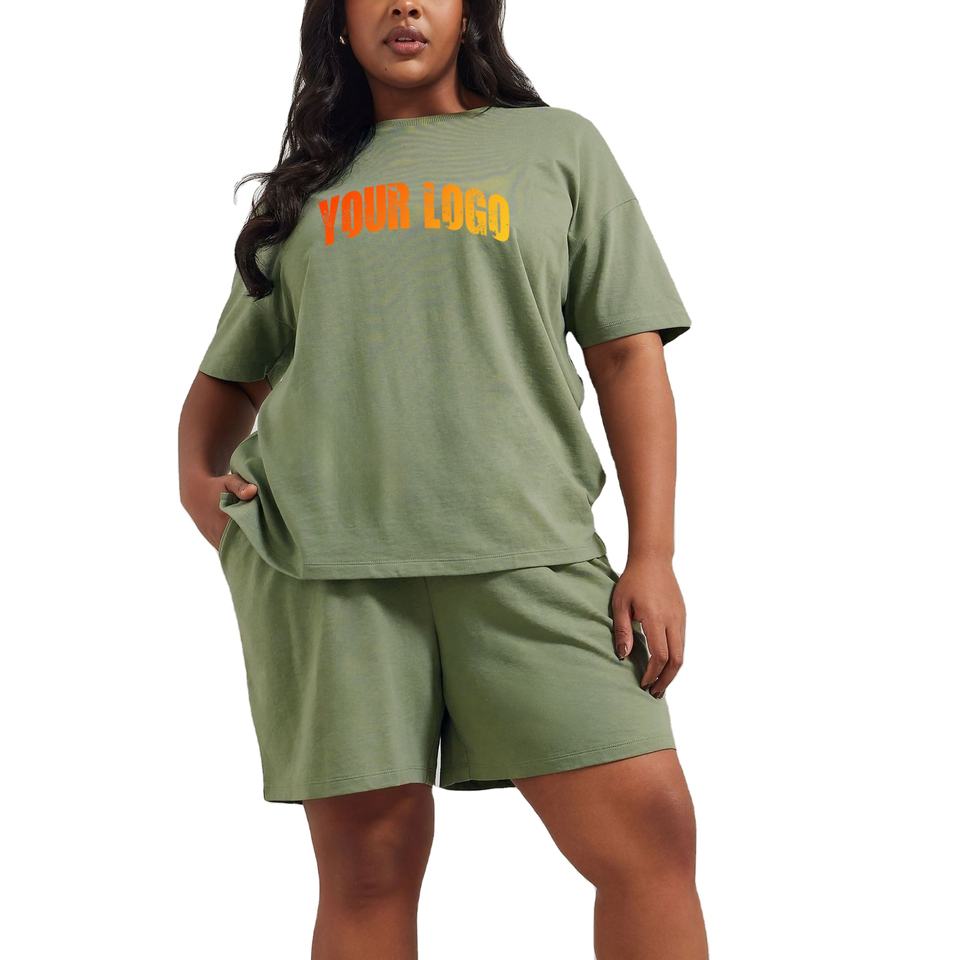 ชุดเซ็ตสองชิ้นลำลองสำหรับผู้หญิง ผ้าฝ้ายแท้ 100% ปักลายลูกไม้ ซักแล้ว ความยาวเหนือเข่า เสื้อยืดคอกลมและกางเกงขาสั้น สำหรับฤดูร้อน ขายส่ง