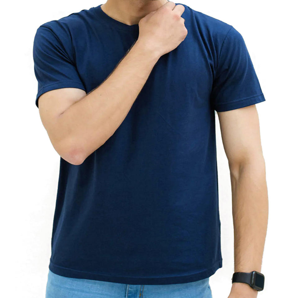 เสื้อยืดคอกว้างแขนสั้นผ้าโพลีเอสเตอร์/คอตตอนน้ำหนักเบาเป็นมิตรกับสิ่งแวดล้อมสำหรับผู้ชาย ขายส่ง | โลโก้ด้านหน้าแบบกำหนดเอง ดีไซน์เรียบง่าย