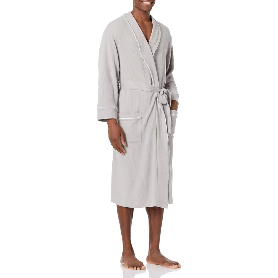 ชุดนอนเก็บความร้อนแขนยาวของผู้ชายชุดคลุมอาบน้ำผ้าฝ้าย100% โรงแรม5ดาวชุดระบายอากาศเซ็กซี่สีพื้น