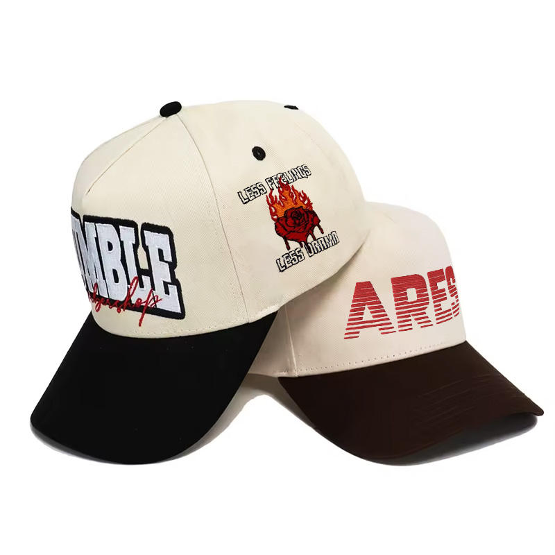 หมวกเบสบอลผ้าฝ้ายลายทแยง5แผงสำหรับกีฬากลางแจ้งหมวกเบสบอล100% ปรับแต่ง3D ปักโลโก้พ่อ