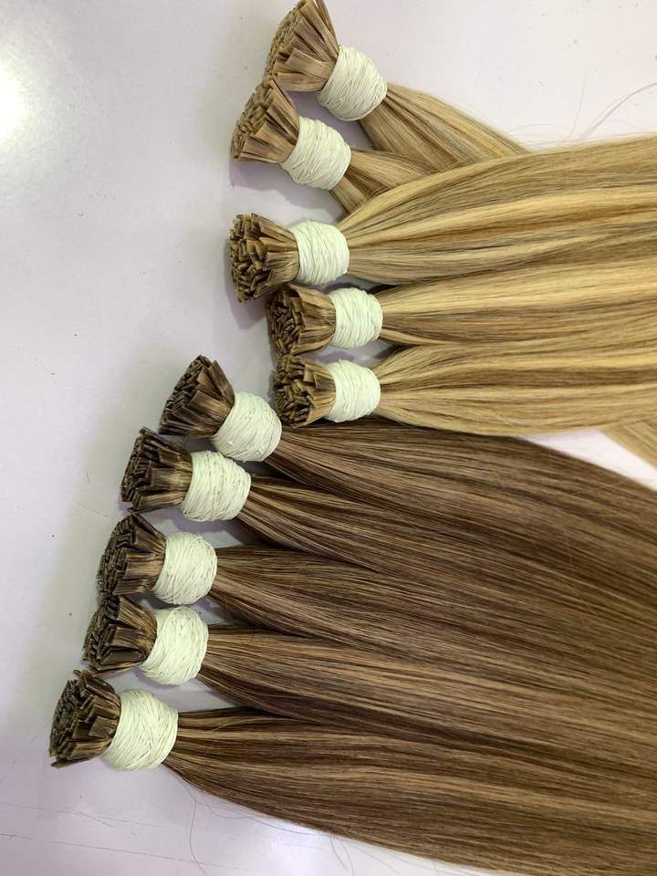ผมคนแบบมีเคราตินสำหรับต่อผมปลายผมทำจากผมสีน้ำตาลเข้มแบบ100%