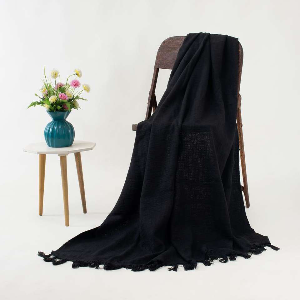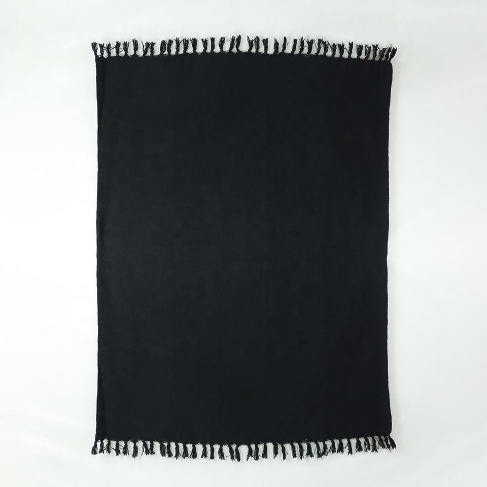 ผ้าคอตตอนทอมือ100% สไตล์เรียบง่ายสีดำล้วนสำหรับห้องนั่งเล่นโซฟาเบดและผ้าห่มคริสต์มาส
