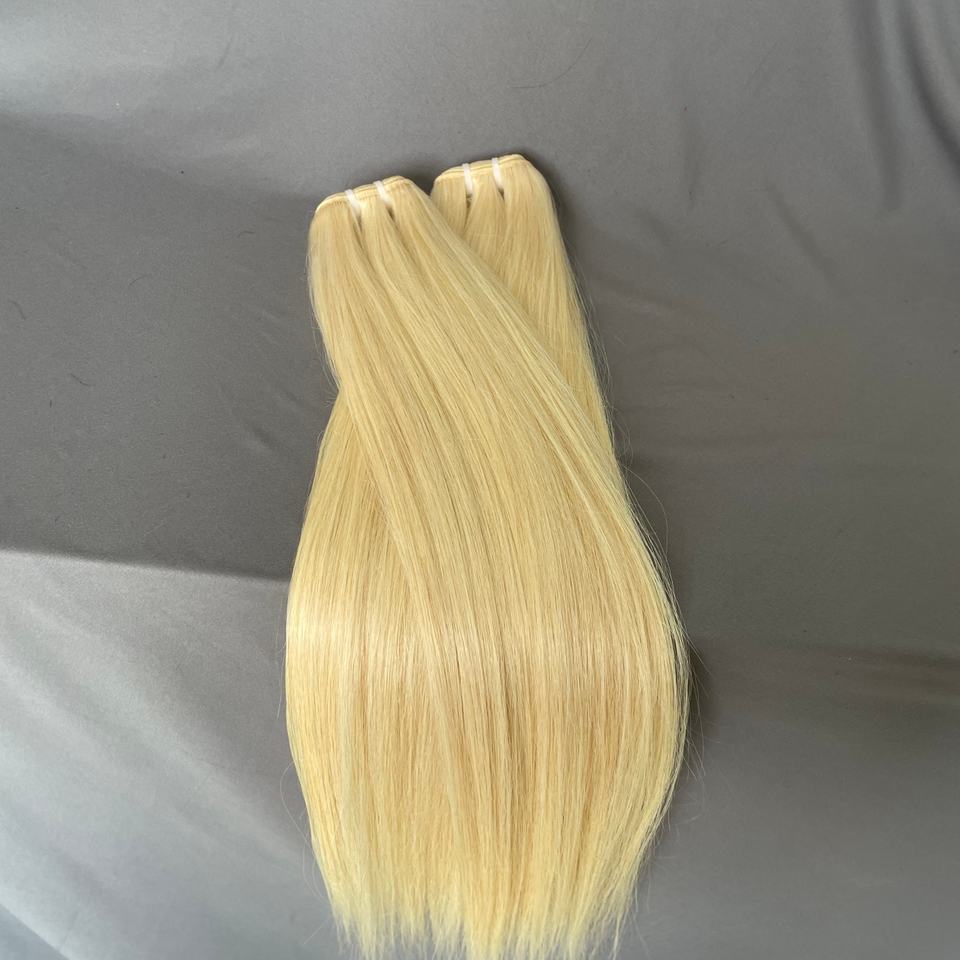ผมแท้แบบมัดเป็นช่อ 100% คุณภาพสูงสุด เกรด 12A ตรง สีบลอนด์ สำหรับขายส่ง