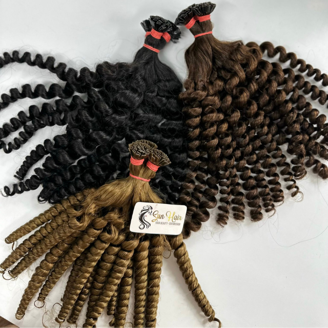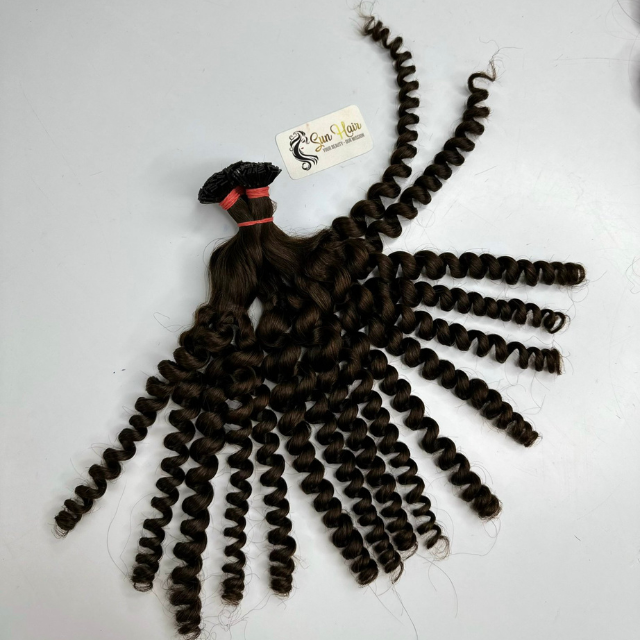 ผมต่อปลายแบนสีเข้มมี100% เป็นลอนแบบไม่ผ่านกระบวนการผมต่อผมมีผิวเรียบติดหนังกำพร้าเป็นทรงแอฟโฟร
