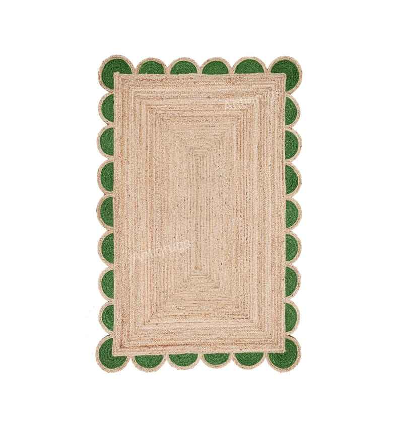 พรมปูพื้นลายดอกไม้กันลื่นแบบถักจากปอกระเจา 100% ขายส่ง พรมทอมือสำหรับห้องนั่งเล่น