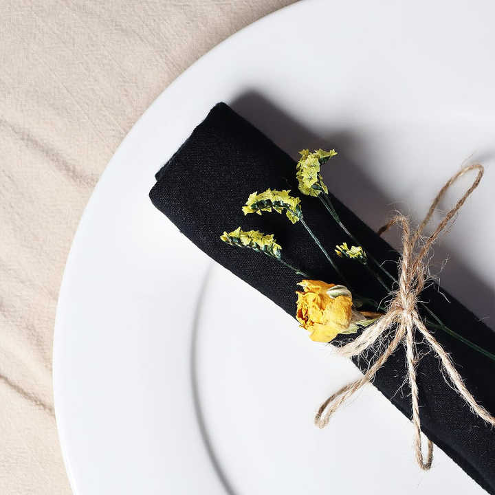 Wholesale 100% Linen Cloth Napkins Simple Black Embroidered Pattern Handmade Disposable Classic Minimalist for Dining Weddings
