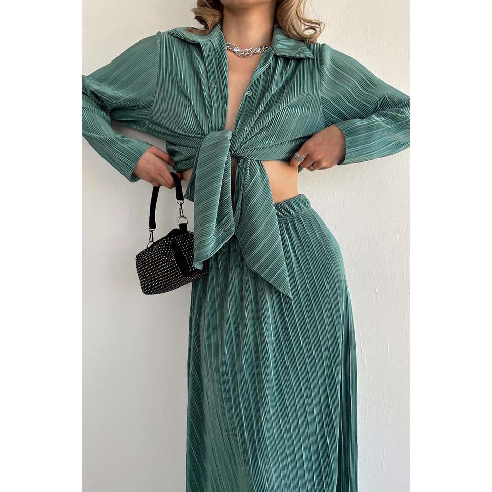 ชุดเซ็ตผ้าลินินคอร์ดูรอยสีมิ้นท์ 100% ขายส่ง ไซส์ XS ชุดลำลองแบบชิ้นเดียว กางเกงขายาวทรงกระบอกและเสื้อท่อนบนสีพื้น ชุดทอผ้าความยาวระดับข้อเท้า