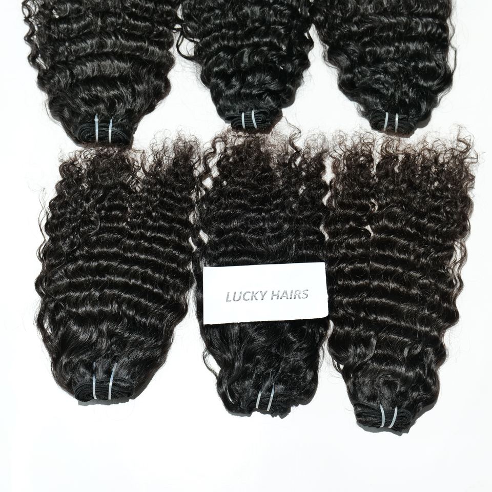 ผมต่อแบบไม่มีสารเคมีธรรมชาติทำจากผมมนุษย์ม้วนเป็นลอนแบบอินเดียสองชั้น100%