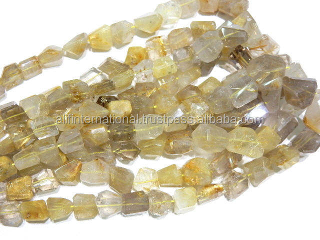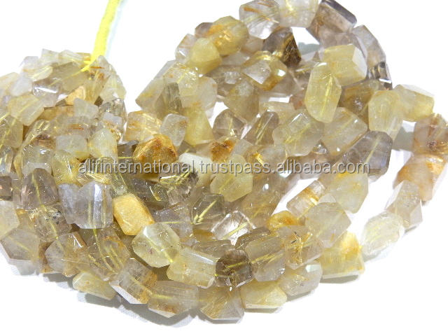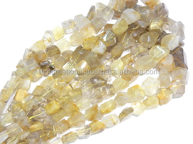 ลูกปัดหินควอทซ์ธรรมชาติสีทองแบบ100% 10-17มม. นักเก็ตตัดเป็นขั้นสีเหลืองอัญมณี