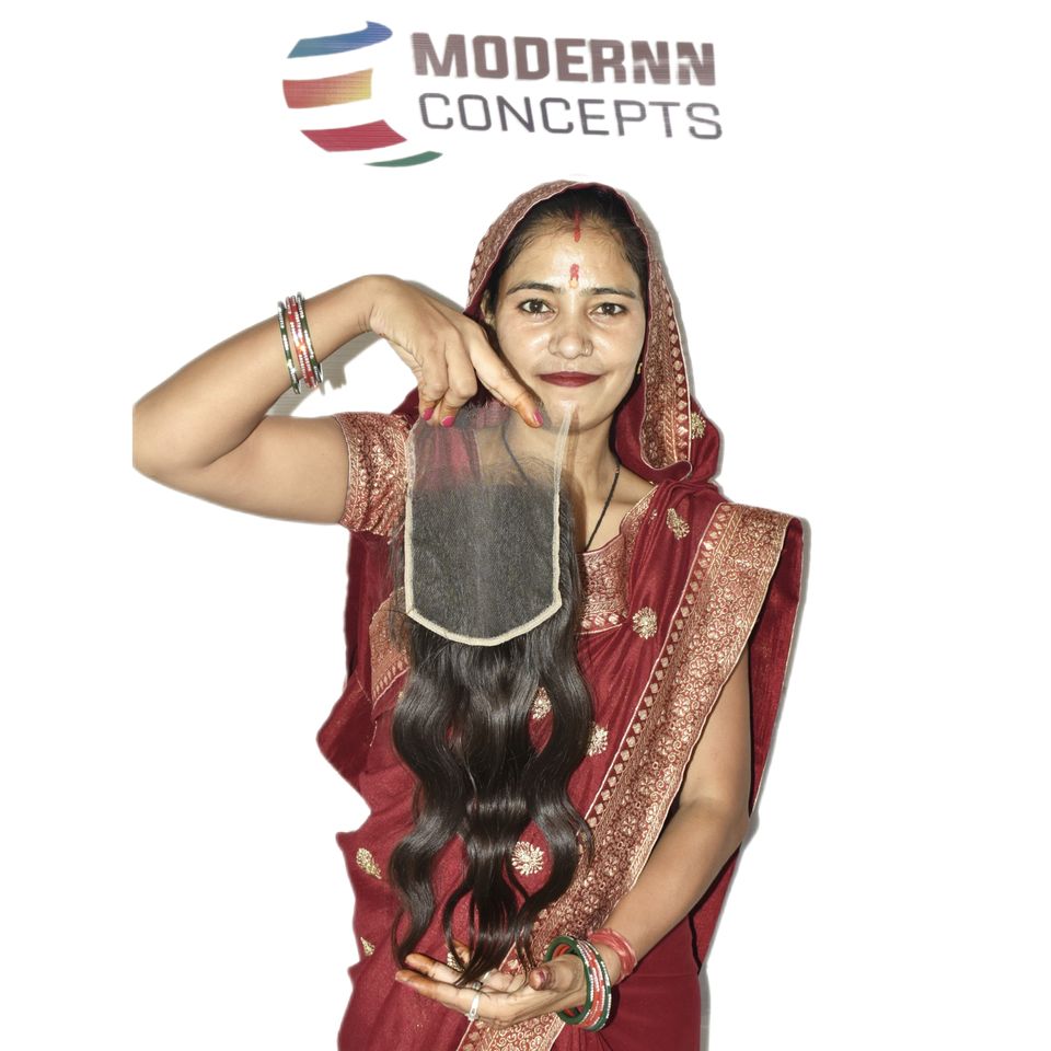 ผมต่อบริสุทธิ์จากธรรมชาติแบบ100% 6*6 HD ประดับลูกไม้สไตล์อินเดียยังไม่ผ่านกระบวนการ