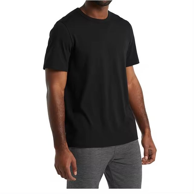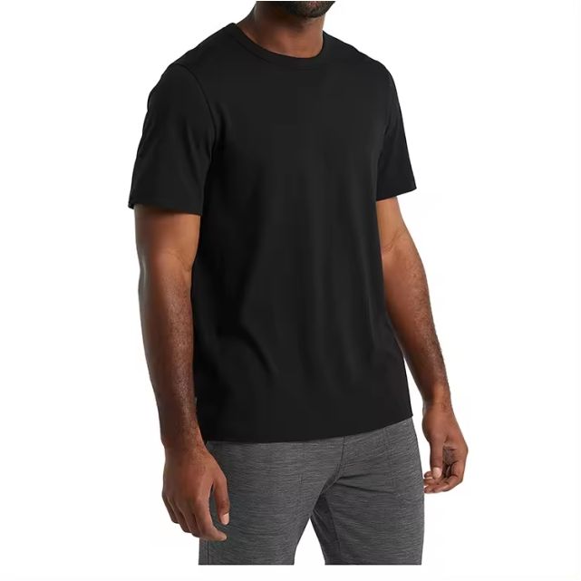 เสื้อยืดผ้าฝ้ายออร์แกนิก100% สำหรับผู้ชายเสื้อยืดแนวสตรีทสีดำล้วนลายตัวอักษรถักแบบลำลอง