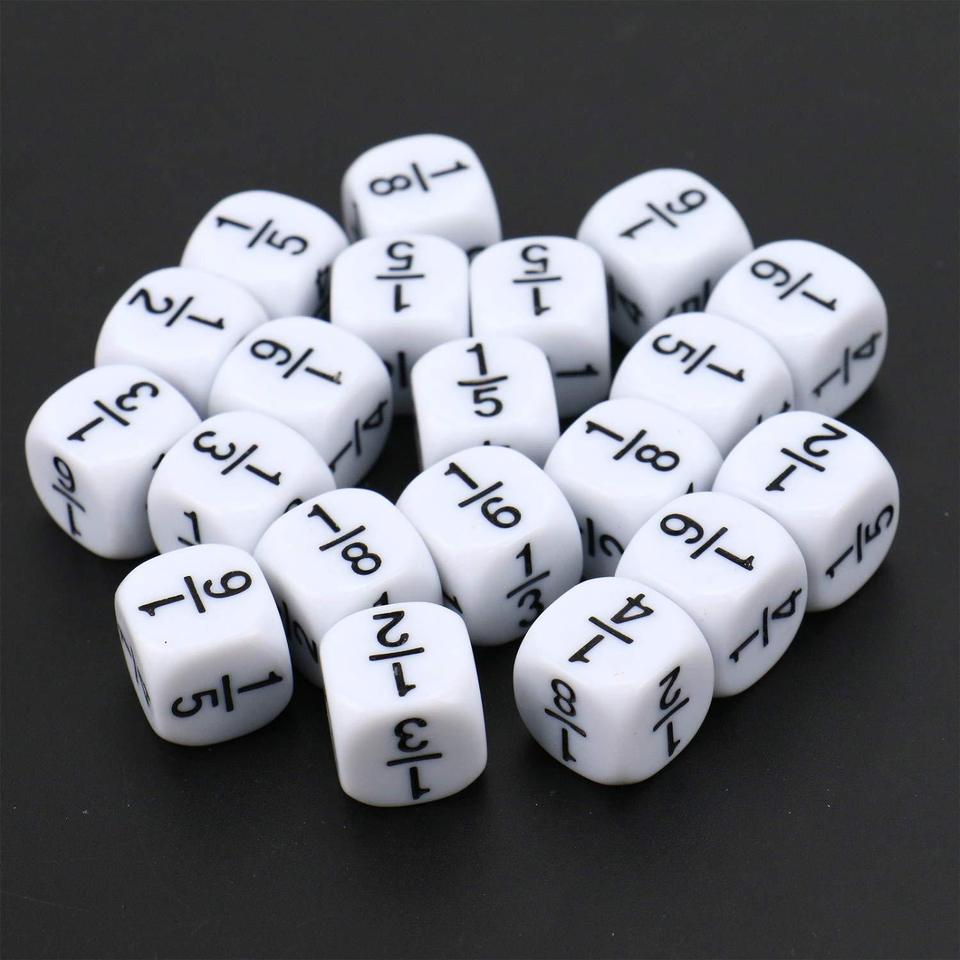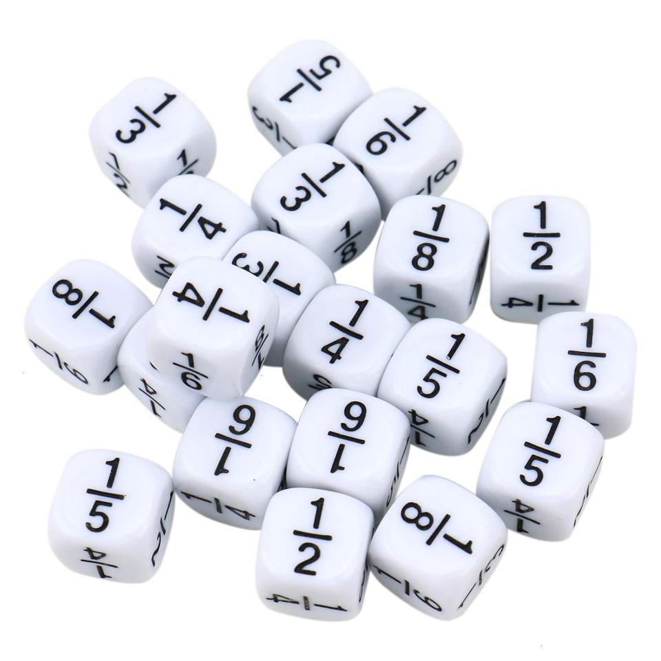 ลูกเต๋าเศษเสี้ยว16มม. สำหรับอุปกรณ์การเรียนการสอนพัฒนาความฉลาดลูกเต๋าตัวเลขเศษส่วน100ชิ้น