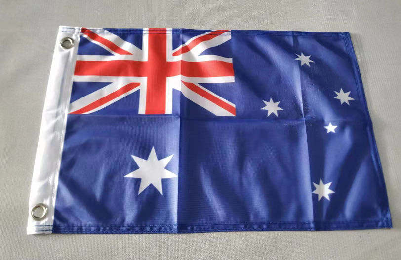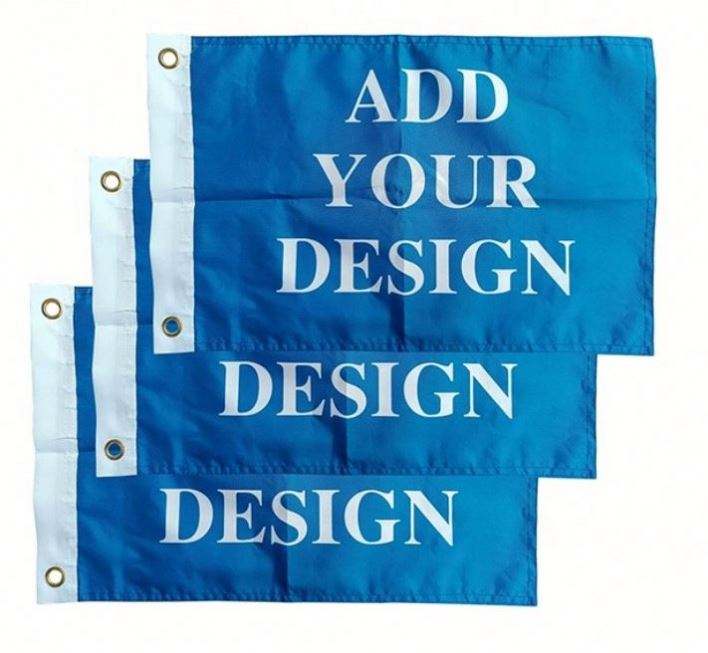 ธงเรือโพลีเอสเตอร์ถัก 110 GSM ขนาด 12x18 นิ้ว แบบสองด้าน พร้อมช่องใส่เสาหรือห่วงตาไก่ด้านซ้าย ขายส่ง โพลีเอสเตอร์ 100%