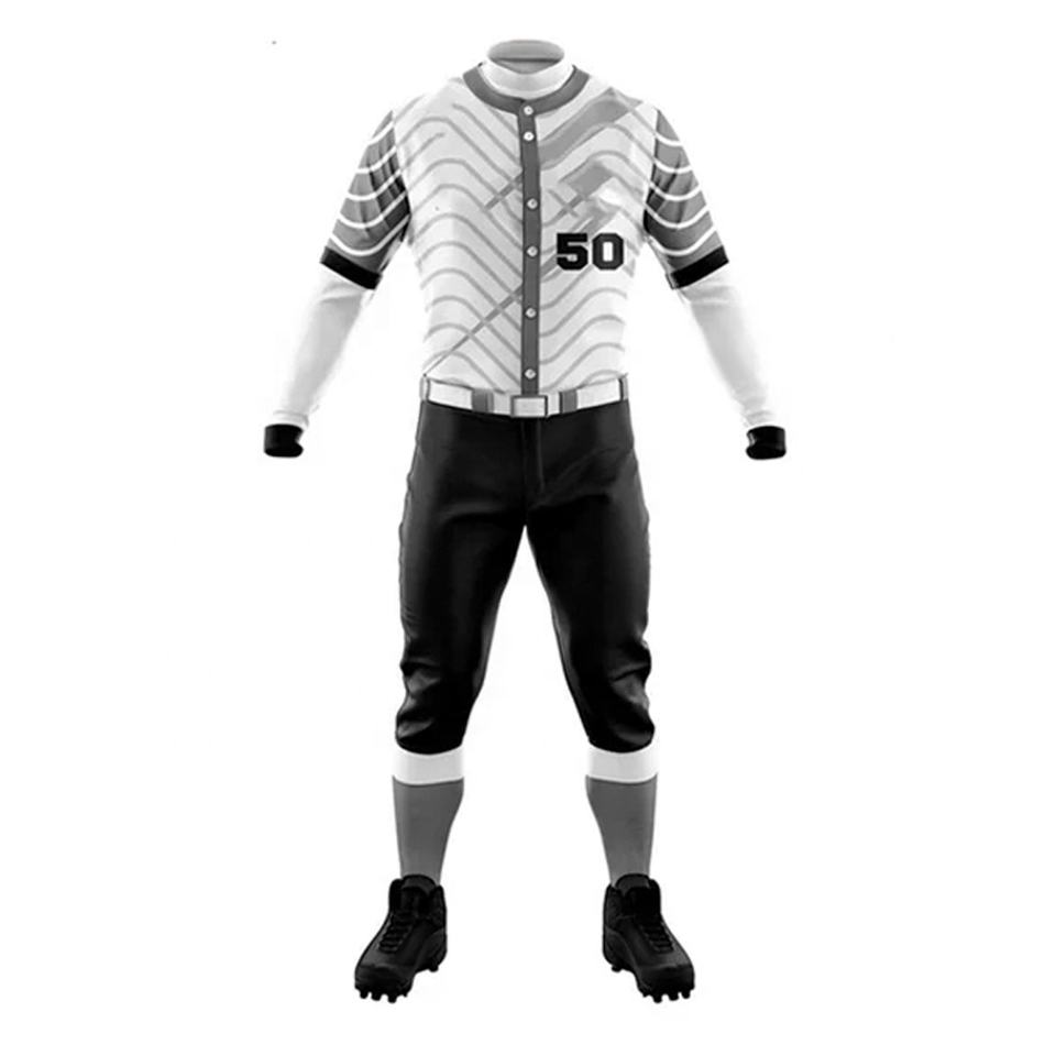 ชุดเครื่องแบบเบสบอล100% ผ้าโพลีเอสเตอร์ออกแบบชุดเล่นเบสบอลซอฟต์บอลสำหรับผู้ชายชุดเสื้อและกางเกงแขนสั้น