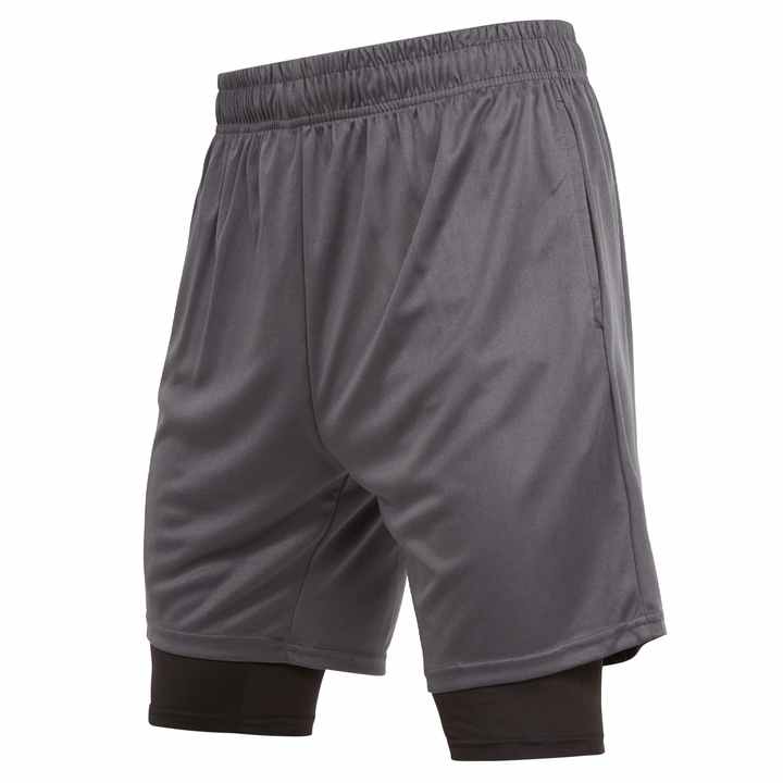 กางเกงวิ่งออกกำลังกายผู้ชาย 2 in 1 ผ้าโพลีเอสเตอร์ 100% ขายส่ง ความยาวขาใน 7 นิ้ว กางเกงออกกำลังกายรัดรูปสำหรับผู้ชาย