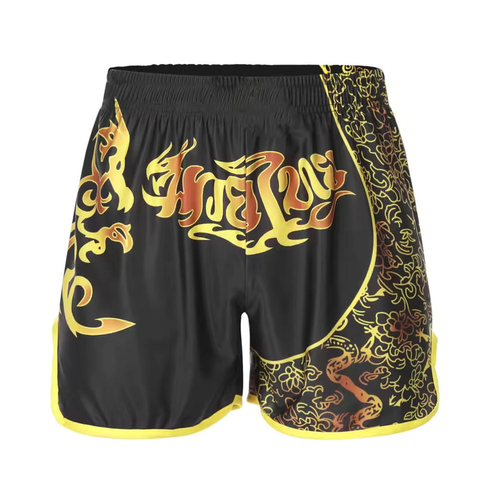 กางเกงขาสั้นรัดกล้ามเนื้อ100% จากผ้าโพลีเอสเตอร์สำหรับมวยไทยชุดศิลปะการต่อสู้แบบใช้เทคนิคการพิมพ์แบบระเหิด