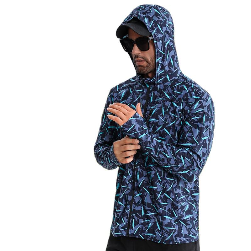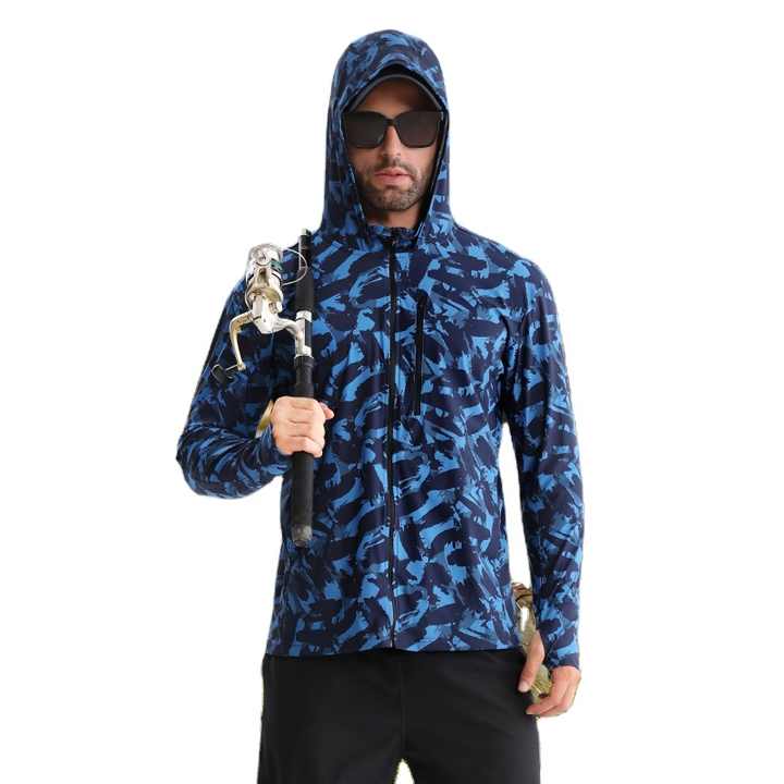 เสื้อตกปลาแขนยาวแห้งเร็วเสื้อมีฮู้ดและเสื้อเชิ้ตระบายอากาศได้ดีผ้าโพลีเอสเตอร์100% ลายพรางชายฝั่ง