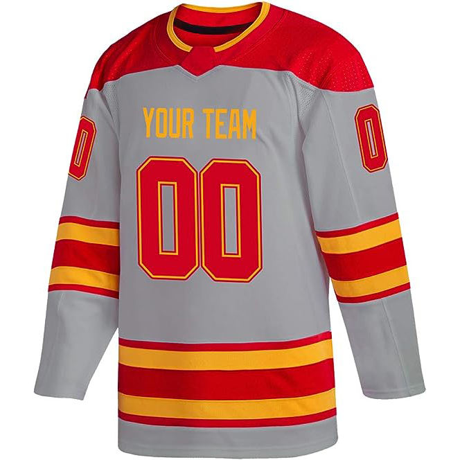 ชุดเสื้อเจอร์ซีย์และกางเกงขาสั้นโพลีเอสเตอร์ระบายอากาศได้ดีชุดทีมฮ็อกกี้น้ำแข็งผลิตตามแบบ100%