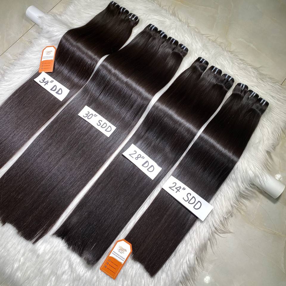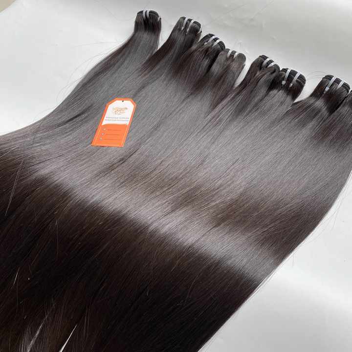 ผมต่อ100% ผมมนุษย์แบบตรงสองชั้นทำจากกระดูก12A มัดผมดิบจากเวียดนาม