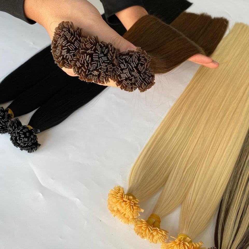 ผมต่อแบบมัดผมมนุษย์สำหรับต่อผมคนบริสุทธิ์เคราตินปลายแบนระดับพรีเมี่ยมจาก100%