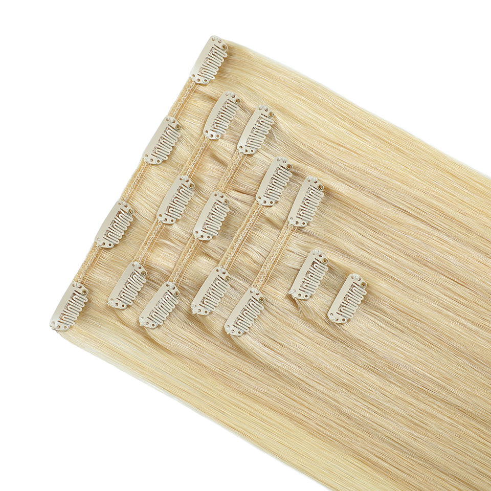 ผมต่อแบบมนุษย์รัสเซียเรมี่100% ผมต่อแบบคลิปไร้รอยต่อสีบลอนด์613สองชั้นสไตล์คลื่นธรรมชาติเกรดผมบริสุทธิ์