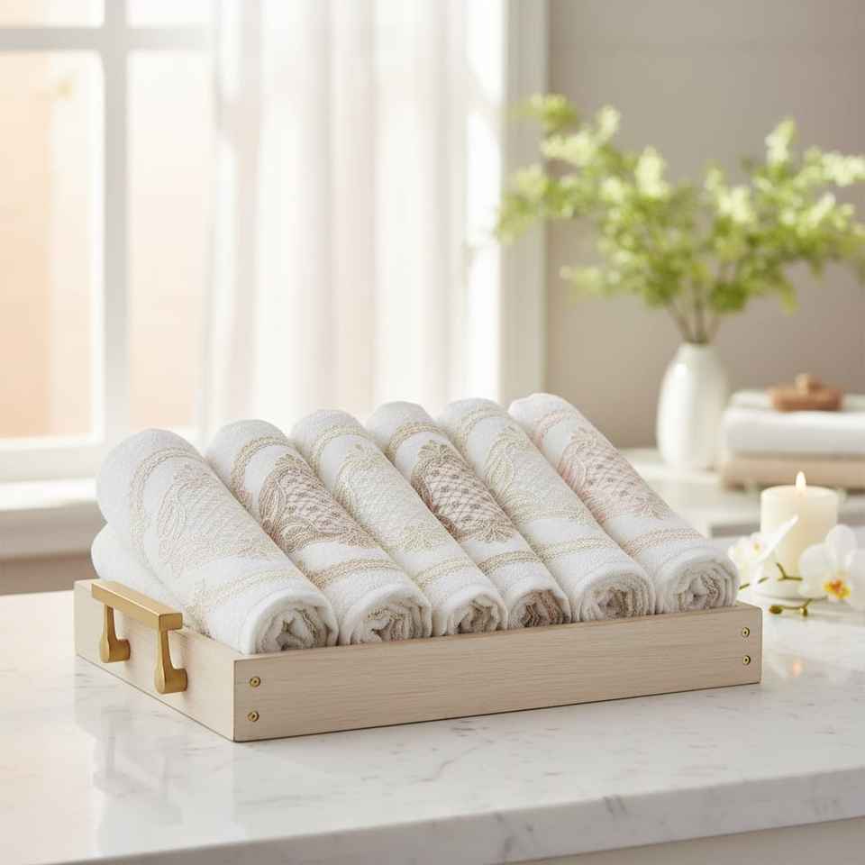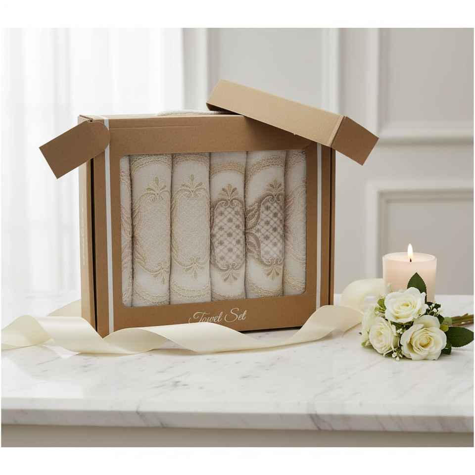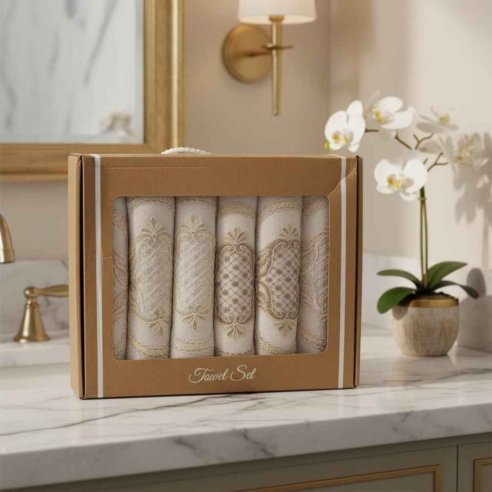 ผ้าขนหนูเช็ดหน้าคุณภาพสูง ผลิตจากผ้าฝ้ายตุรกีแท้ 100% ขนาด 50x70 ซม. ลายปักลูกไม้ปารีส 390 GSM ชุด 6 ผืน บรรจุกล่อง ผลิตในตุรกี