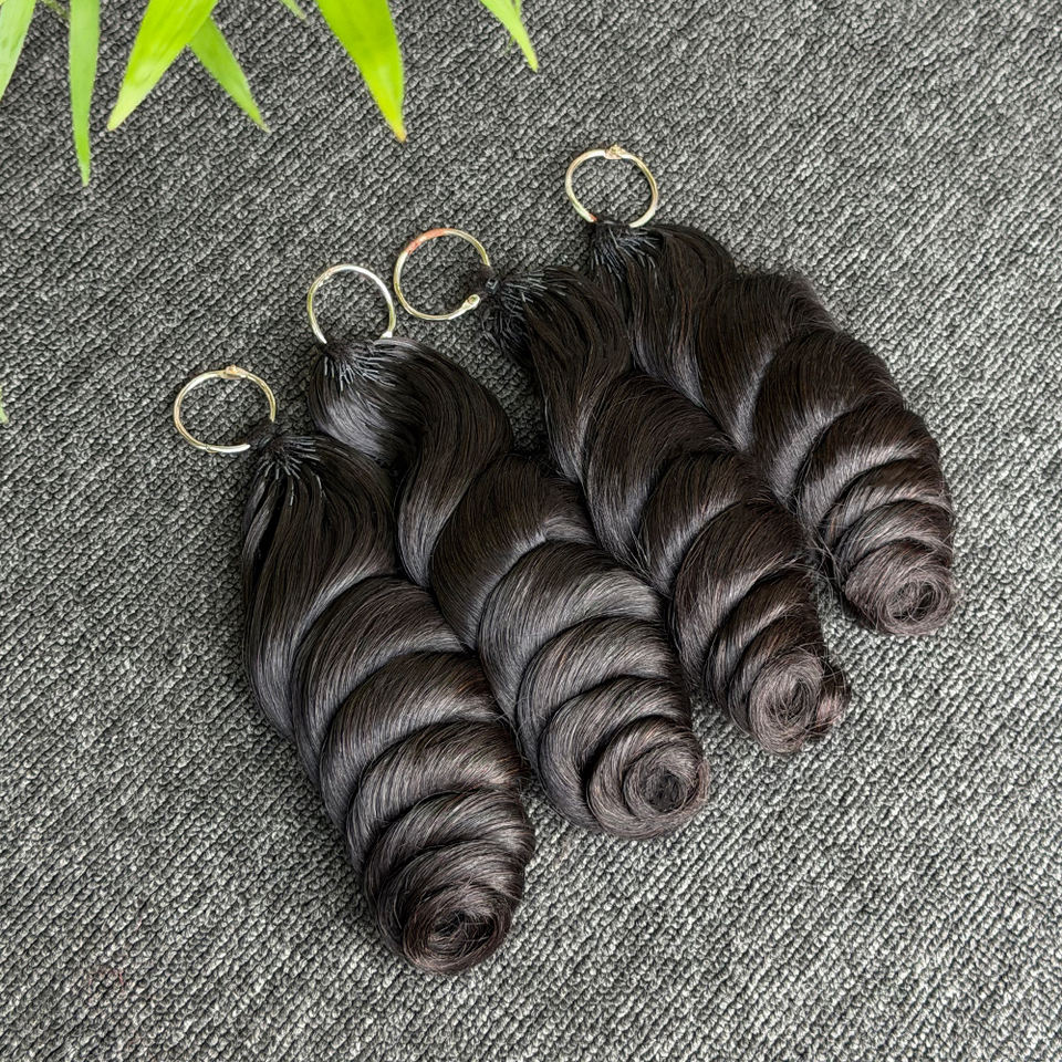 ผมแท้ 100% ไม่ผ่านกระบวนการใดๆ ขายส่ง ขนาด 12-32 นิ้ว แบบลอนหลวม ต่อผมแบบโครเชต์ ทรง Pixie Curl สีธรรมชาติ