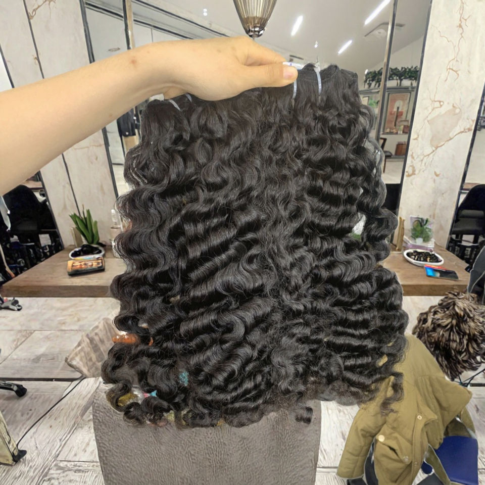 เครื่องต่อผมมนุษย์บริสุทธิ์แบบอินเดียผมลอนแบบลอนคลื่นลอนแบบอิตาลีสองชั้นยังไม่ได้แปรรูป