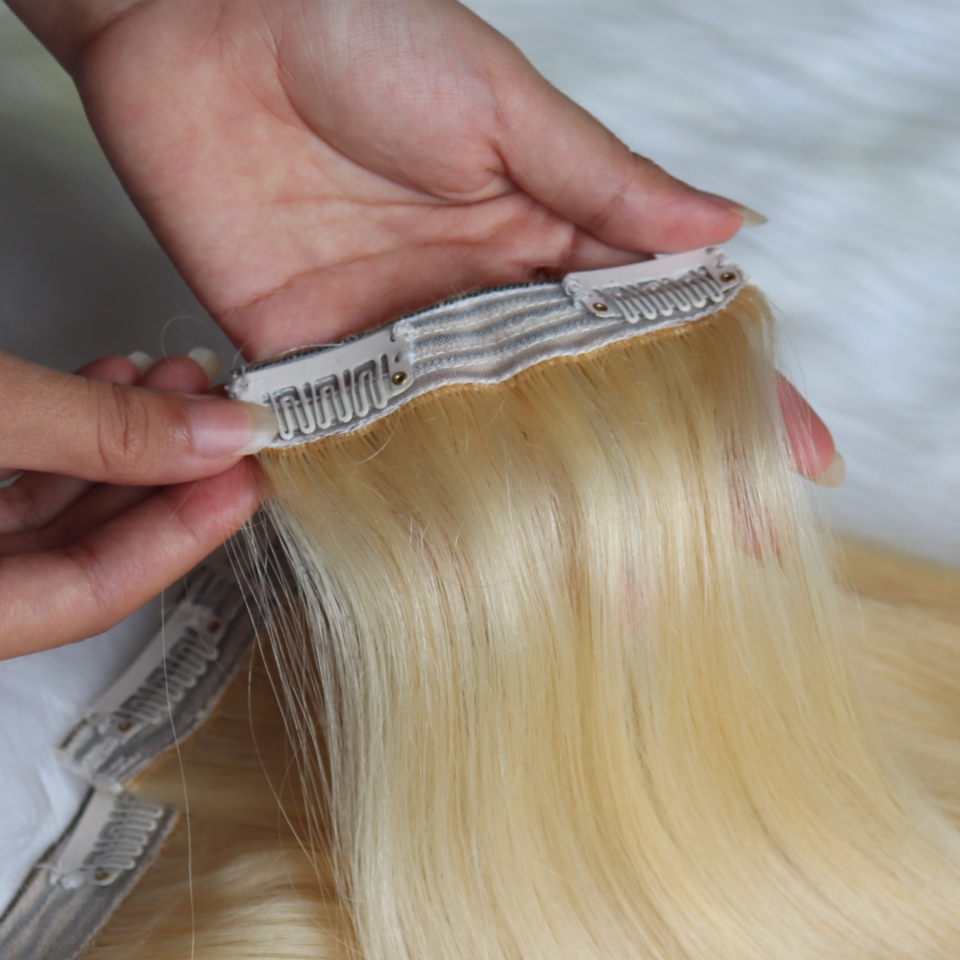 กิ๊บติดผมผม100% ผมสีบลอนด์แบบไม่ผ่านกระบวนการผมคนผมแท้แบบไม่ผ่านกระบวนการ