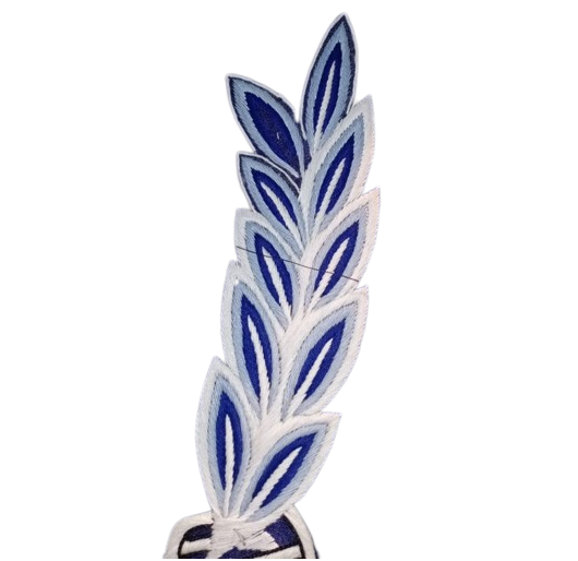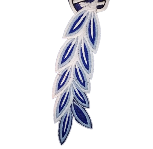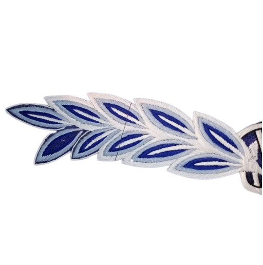 เส้นลวด100% ออกแบบได้ตามต้องการปักโลโก้ป้ายเย็บแฟชั่นสีขาวและสีฟ้า