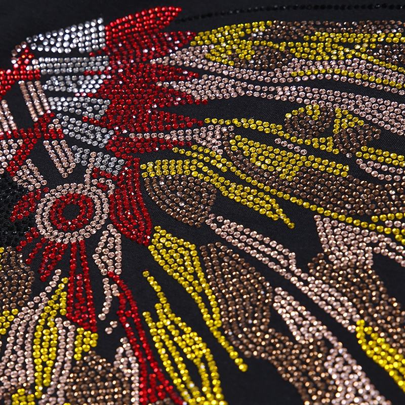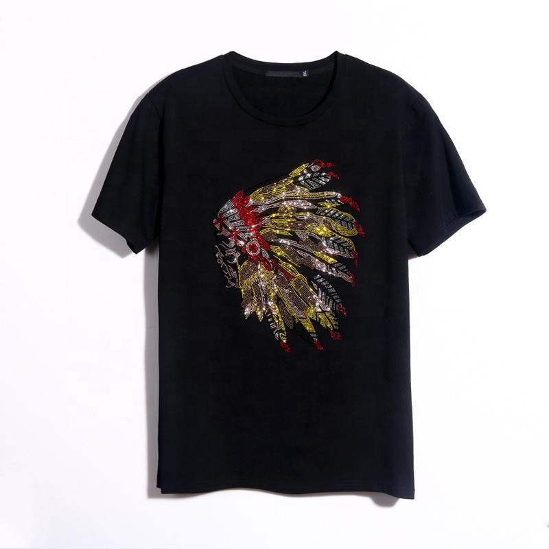 ขายส่งผ้าฝ้าย100%ที่กําหนดเองฤดูร้อนโอนrhinestoneหลากสีขนาดใหญ่ชุดที่เย็บกว่ากะโหลกวินเทจhotfixวินเทจ
