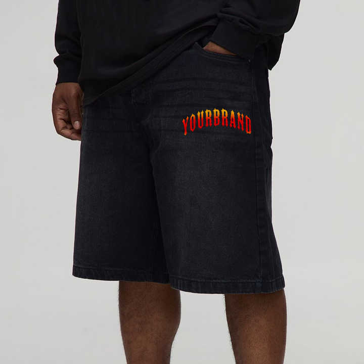 กางเกงยีนส์ขาสั้นผู้ชายผ้าฝ้ายแท้ 100% ขายส่ง สกรีนโลโก้ตามสั่ง สไตล์สตรีทแวร์ ฮิปฮอป สีน้ำเงินฟอก