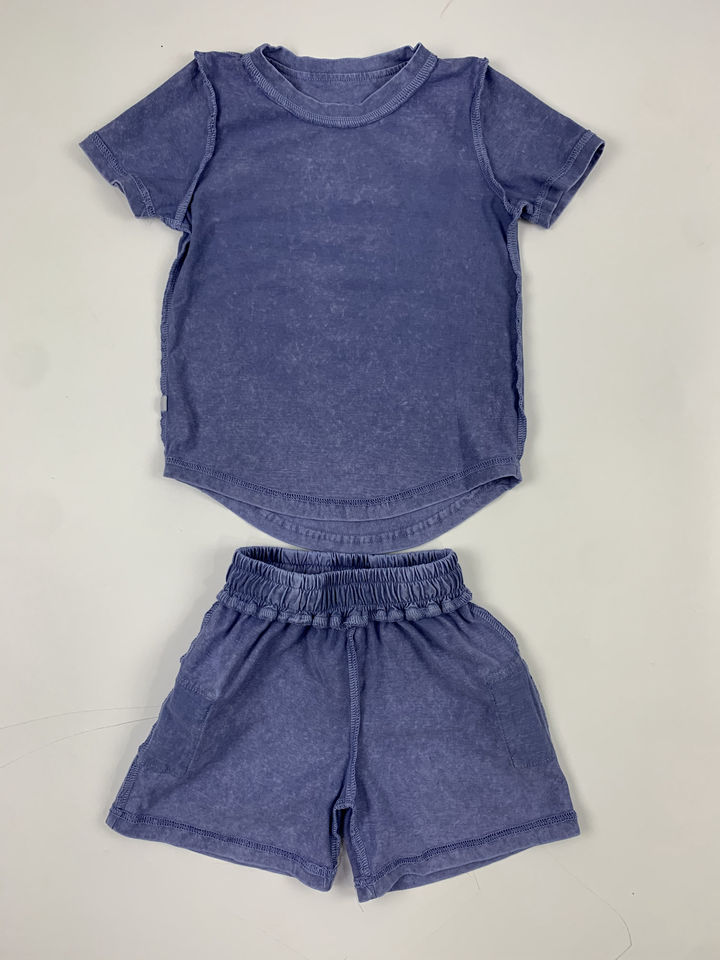 ชุดเซ็ตกางเกงขาสั้นผ้าฝ้าย2ชิ้นสำหรับผู้ชายคอตตอนฟอกจากหินแนววินเทจแบบ100% มีกระเป๋าสำหรับใส่ของ