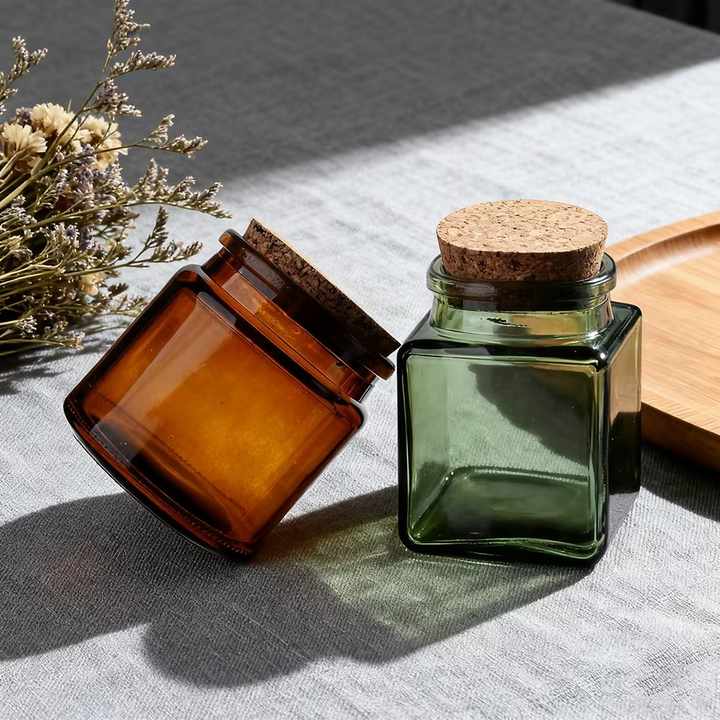 ขวดแก้วลายสวยงามขนาด 100 มล. 200 มล. พร้อมฝาไม้ สำหรับบรรจุเทียนหอมในบ้าน ขายส่ง