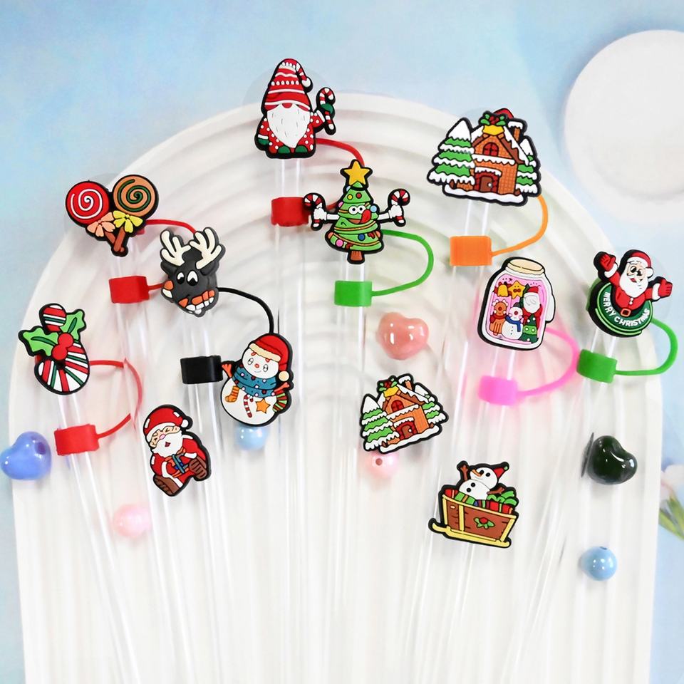ฝาปิดหลอดดูดน้ำแบบนิ่ม PVC ขนาด 10 มม. ขายส่ง ลายการ์ตูนคริสต์มาสสุดฮิต ปลั๊กซิลิโคนแบบใช้แล้วทิ้ง ป้องกันฝุ่น อุปกรณ์เสริมสำหรับเครื่องดื่ม