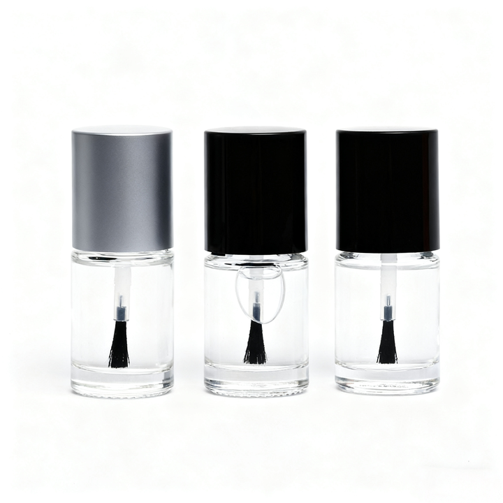 ขวดแก้วทรงกลมสำหรับบรรจุยาทาเล็บ ขนาด 10 มล. 15 มล. พร้อมฝาสีดำ เงิน ทอง สำหรับขายส่ง